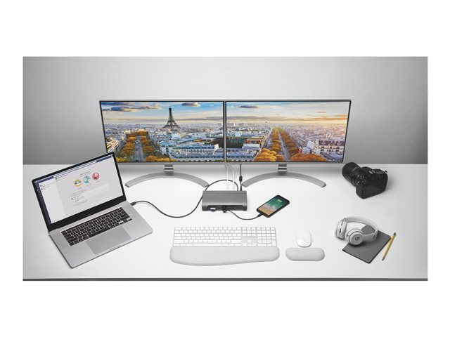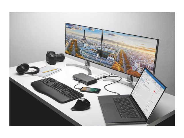 The SD5600T Thunderbolt 3 and USB-C Dual 4K Hybrid Docking Station - 100W PD - Win/Mac is the ultimate docking station for maximum productivity and compatibility. Features include universal compatibility, the flexibility to select between HDMI 2.0 and DP 1.2, horizontal or vertical placement options, built-in SD and Micro SD card readers, seven USB ports (two with charging), one Gigabit Ethernet port and one audio combo jack.