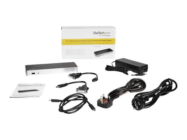 The USB-C dock lets you connect dual monitors with flexible options. Connect to: 2x HDMI or 2x DVI displays at 1920 x 1200p @ 60Hz; 1x HDMI + 1x DVI display.