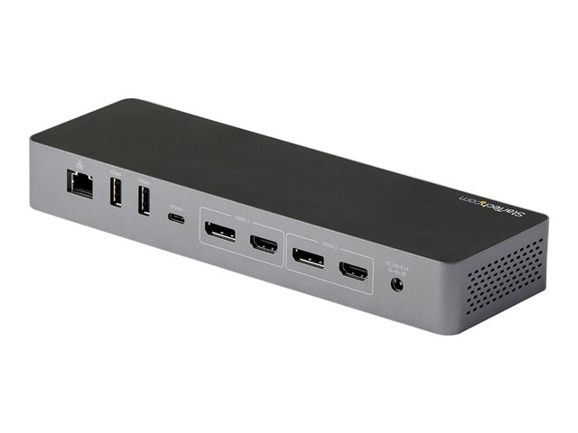 A high-performance Thunderbolt 3 certified docking station with USB Type-C compatibility featuring dual monitor 4K 60 Hz DSC support from either dual or dual HDMI video outputs, 96 W Power Delivery (100 W peak power), 5x USB 3.2 hub with 2x BC 1.2 fast charging ports, Gigabit Ethernet and headset ports.