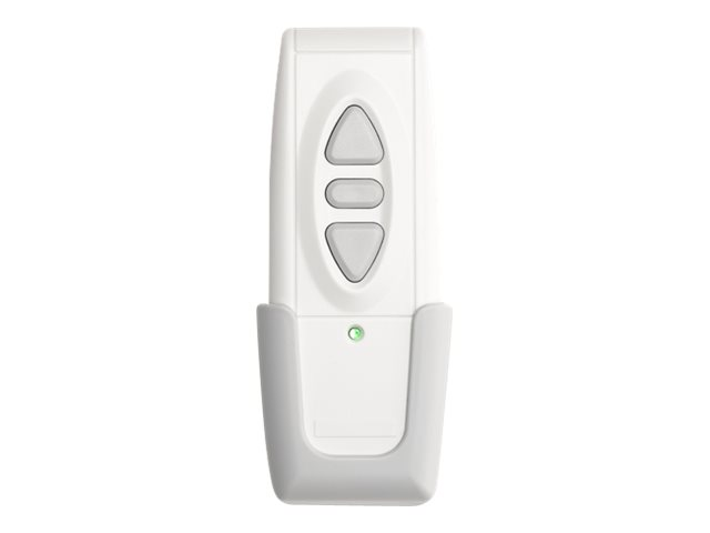 This extra remote transmitter kit uses infrared connectivity (IR) and therefore works well with learnable IR master control systems like the Logitech Harmony series.