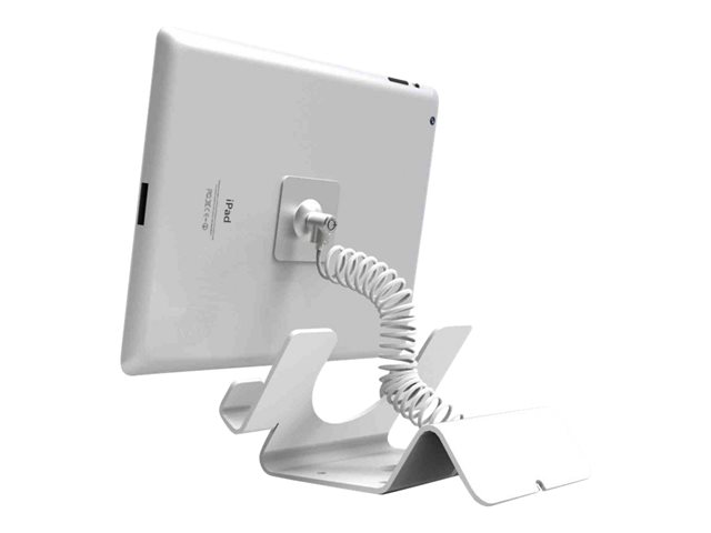 Universal Tablet Security Holder - Universal Tablet Security Stand - Secures all Tablets! The new Tablet Security Stand is compatible with all the leading tablets (7 inches or more) from the top brands. Its wide compatibility range makes it the ideal fit for any display setting whether it's a retail store, corporate office, school lab, VIP lounge or even as an addition to your personal home entertainment system. A simple design with unique security features distinguish it from the cluttered pack of tablet stands on the market. Positioned at a 45 degree angle for optimal viewing with an open back design to fit the locking point and security cable. The stand has a balance stabilizer that serves as a cable trap to keep your cords in order and from being stolen.