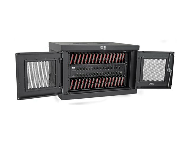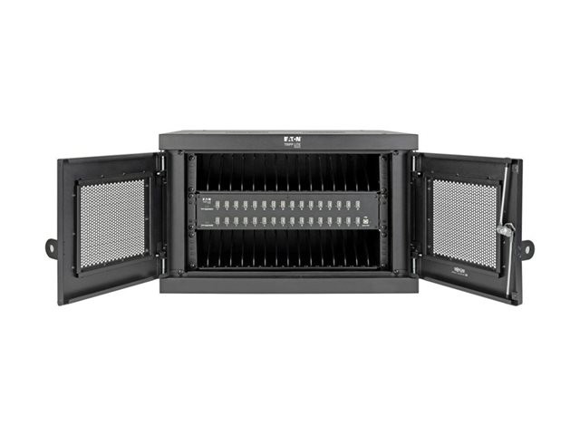 Eaton Tripp Lite Series 32-Device USB Charging Station Cabinet with Sync for Smartphones, Wall Mount and Desktop Options, 230V, Schuko CEE7 to C13 Plug, Black - Lader for flere enheter skap - med sikringsbryter - skrivebord, veggmonterbar - svart - for P/N: M100-10N-BK, M100-10N-BK-10, SRXFANWM, U326-001-BK