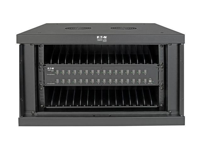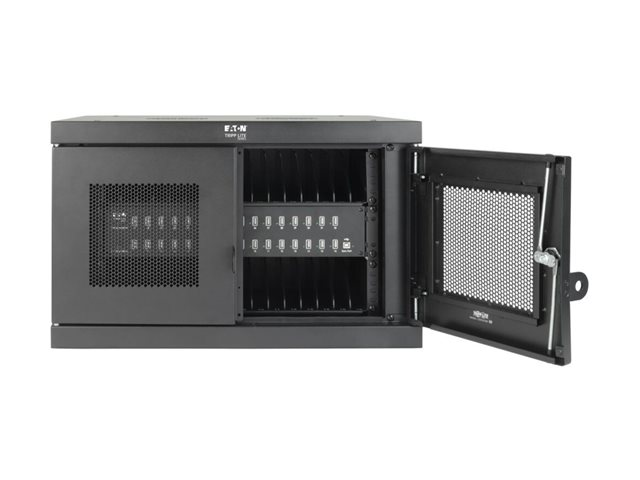 Eaton Tripp Lite Series 32-Device USB Charging Station Cabinet with Sync for Smartphones, Wall Mount and Desktop Options, 230V, Schuko CEE7 to C13 Plug, Black - Lader for flere enheter skap - med sikringsbryter - skrivebord, veggmonterbar - svart - for P/N: M100-10N-BK, M100-10N-BK-10, SRXFANWM, U326-001-BK