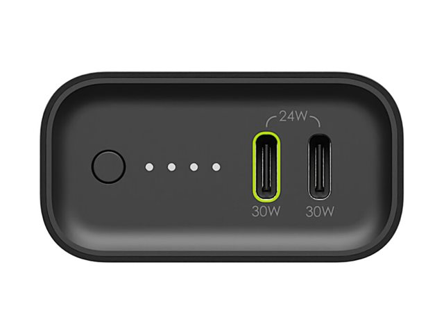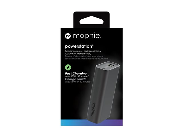 With its Power Delivery fast charge technology, the mophie powerstation can deliver up to 30 W of power. It is equipped with two output connectors, allowing for the simultaneous charging of two devices. An LED indicator provides a quick view of the battery status, making it easy to monitor the remaining power. A single 24 pin USB-C input ensures efficient recharging of the power bank itself.