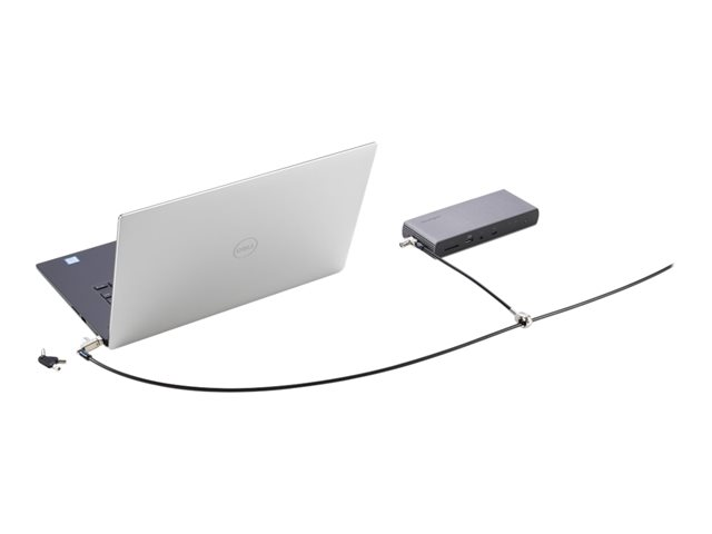 The Slim N17 2.0 Keyed Dual Head Laptop Lock for Wedge-Shaped Slots lets you lock two devices with a single solution, won't block valuable ports, and allows the laptop to lie flat and stable. Secondary T-bar lock head secures peripheral accessories featuring the industry-standard Kensington Security Slot. Features an omnidirectional pivoting head and rotating anchor and 5 mm keying system. Supervisor keyed allows lock access only to authorized administrators.