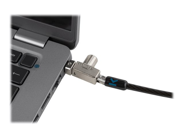 The Kensington Slim N17 2.0 Portable Keyed Laptop Lock for Wedge Shaped Slots is designed for safeguarding your laptop. It features a self-coiling cable and a pivoting lock head for flexibility and ease of use. Made from carbon steel, this security cable lock provides a sturdy defense against theft. The 5mm Keying System enhances security, while the Register & Retrieve feature offers a reliable way to recover lost keys, ensuring protection in various settings.