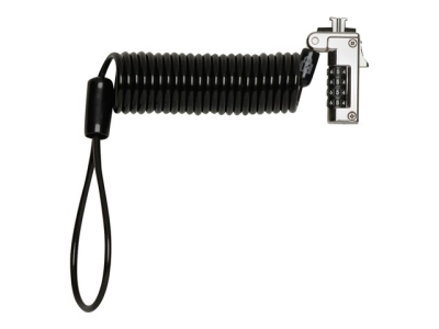 Ideal for thin laptops, the Slim Portable Combination Lock for Standard Slot allows the laptop to lie flat and stable without blocking valuable ports. Self-coiling carbon steel cable sheathed in plastic stretches up to 1.8m and shrinks down to 76mm for easy portability. Features include a resettable four-number combination, one-handed operation and Register & Retrieve for quick, secure and easy combination retrieval. Meets or exceeds rigorous strength testing standards.